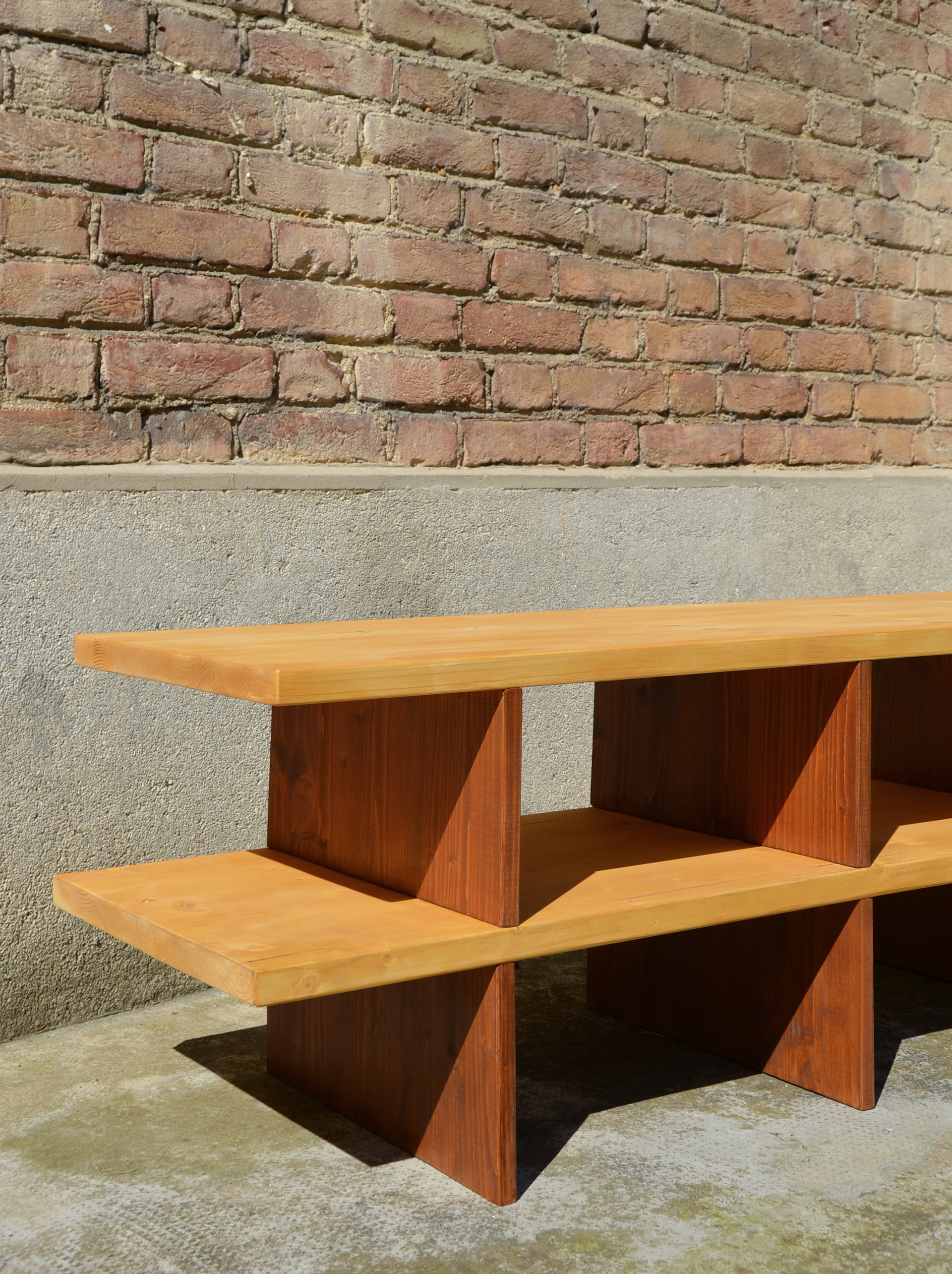 L'OFTicina Art&fatti is a craft and art workshop run by Cooperativa Alfieri in collaboration with Cooperativa Animazione Valdocco. The workshop offers creative and craft activities for people with disabilities from the Merak consortium, led by Tiziana Veratti and Eleonora Guzzo. Together, we built it using laminated fir, stained in two tones, and assembled it with wooden dowels to keep the structure clean and solid, with no visible hardware, a one-of-a-kind piece, built with many different hands.